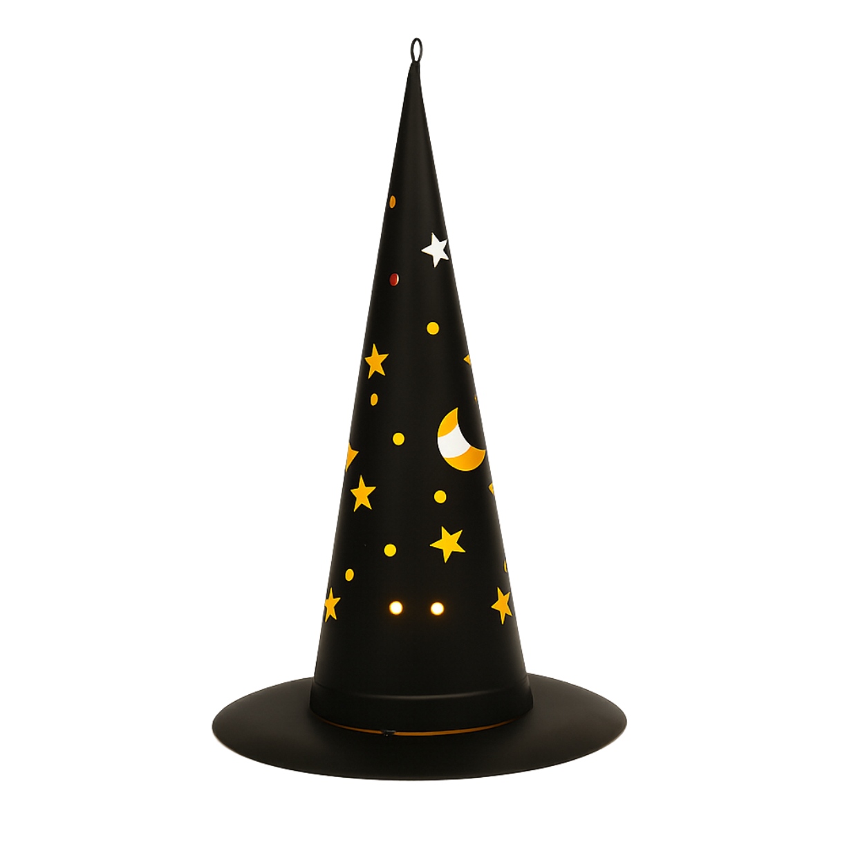 Cast a spellbinding glow upon your haunted home with our LED Witch Hat Lantern! Detailed with moon and star shaped cutouts, this Halloween decoration shines with enchantment and whimsy.✨🌙