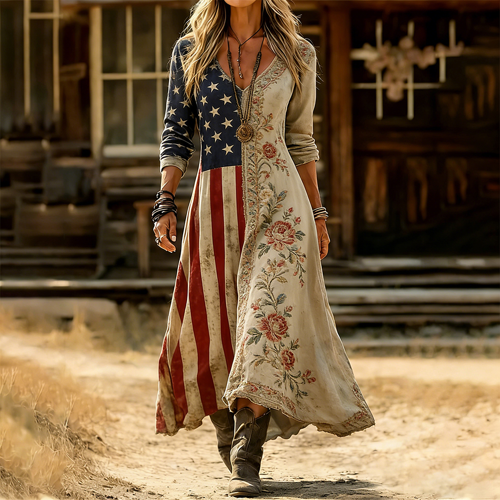 American Floral Art and Leisure Print Casual Dress