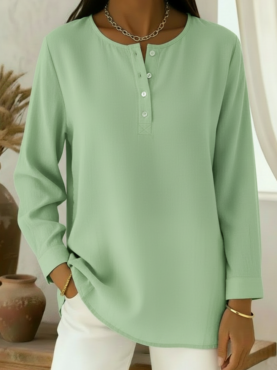 Casual Henley Collar Cotton And Linen Shirt