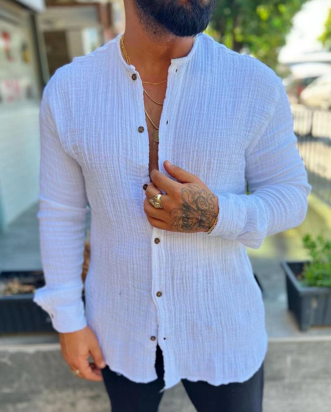 Men's Cotton Linen Casual Long Sleeve Shirt