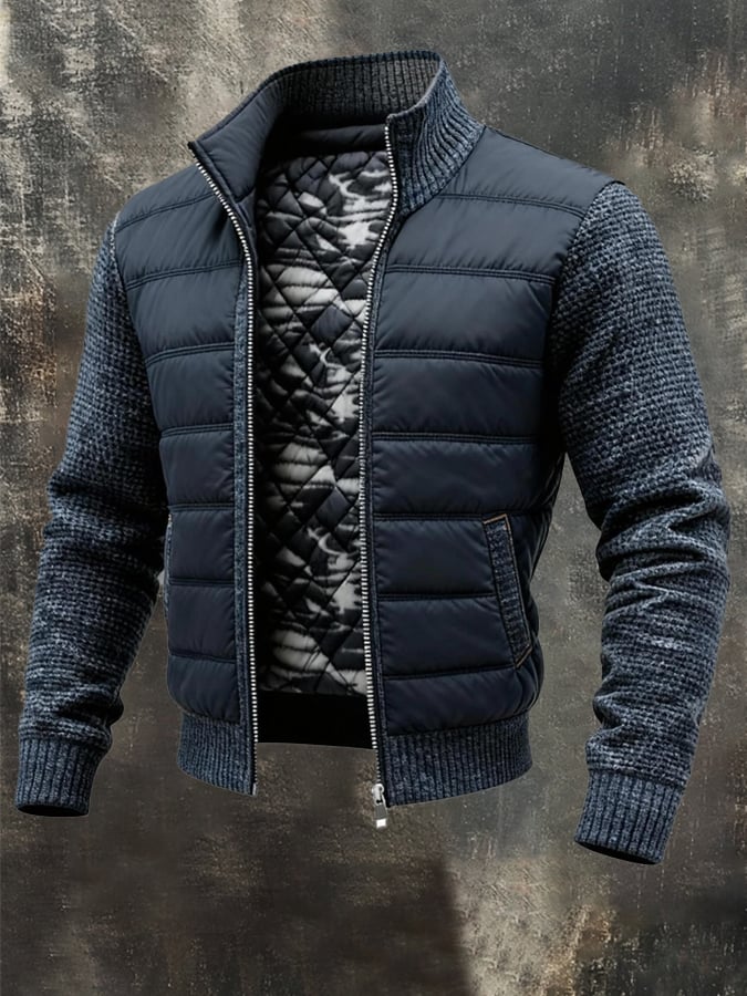 Men's Retro Quilted Warm Knit Patchwork Zipper Jacket