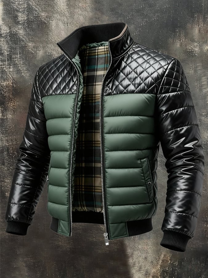 Men's Retro Quilted Warm Knit Patchwork Zipper Jacket