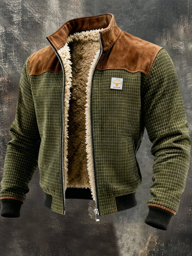 Men's Retro Textured Fabric Fleece-Lined Warm Outdoor Jacket