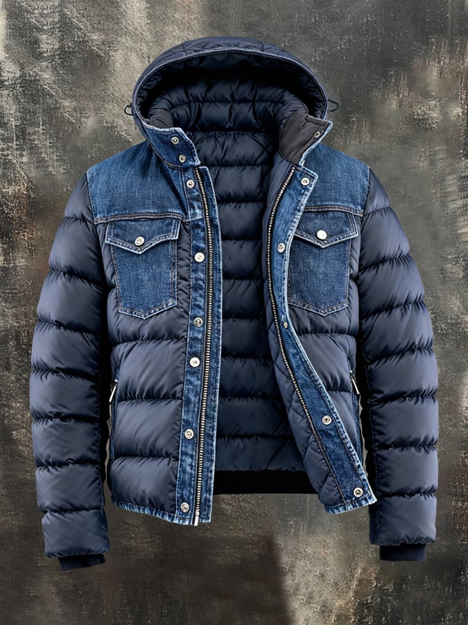 Men's Retro Warm Patchwork Denim Outdoor Jacket Cotton Coat