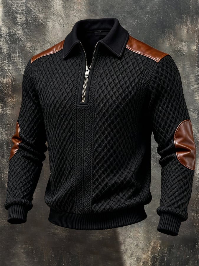 Men'S Vintage-Style Textured Patchwork Color-Block Long-Sleeved Sweatshirt