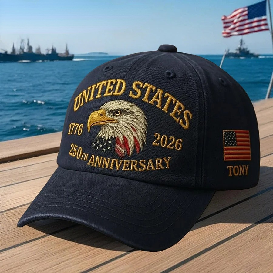 Celebrate 250 years of American freedom (1776–2026) with this Custom Name United States 250th Anniversary Classic Cap—a proud tribute to liberty, courage, and unity. Featuring a bold design with a bald eagle and a waving U.S. flag, this cap delivers a strong, timeless patriotic look that’s easy to wear every day.