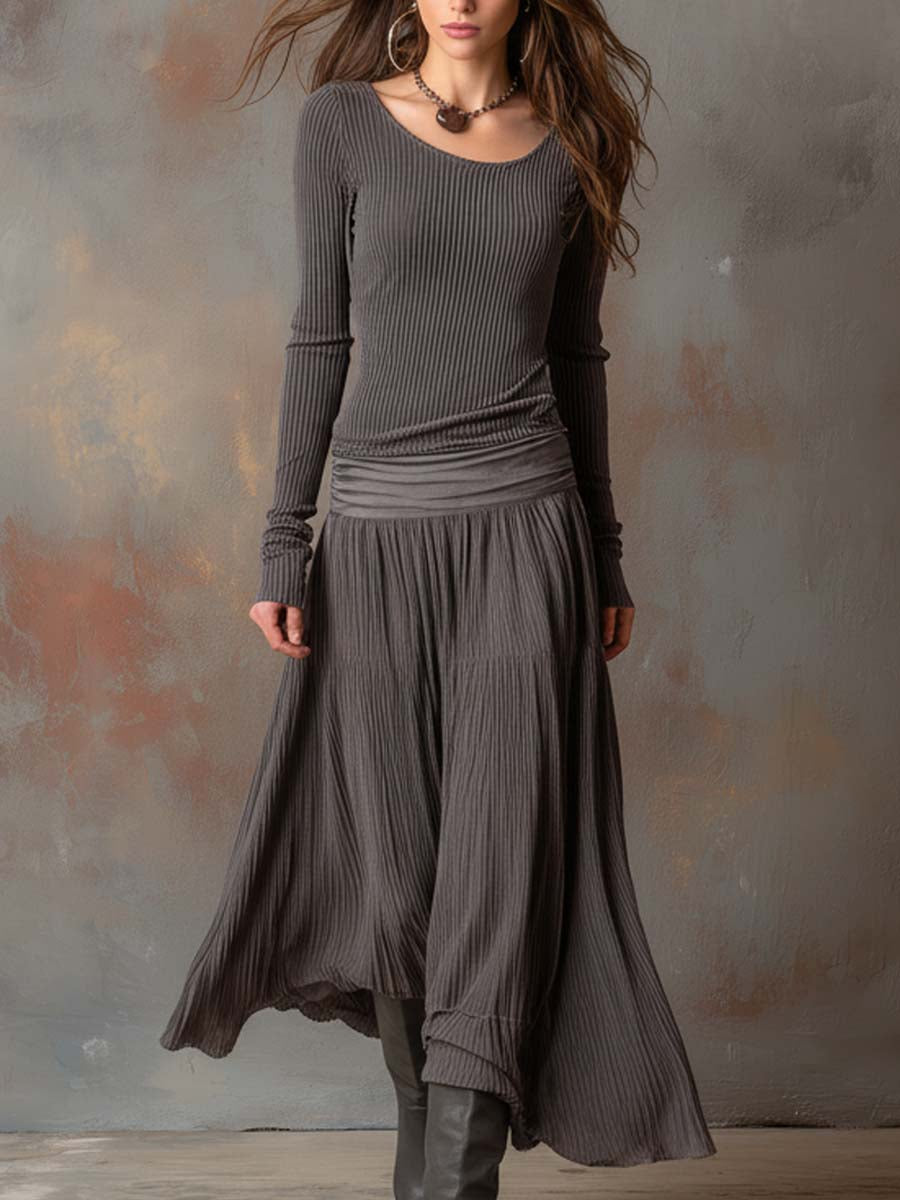 Vintage Ribbed Knit Maxi Dress In Charcoal Gray
