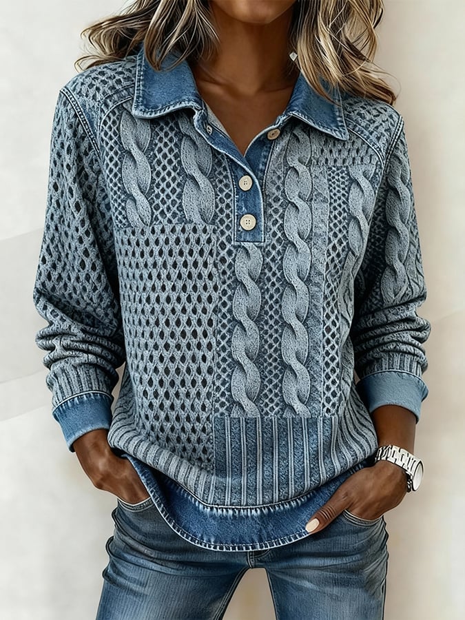 Women's Casual Collar Printed Patchwork Pullover Sweatshirt