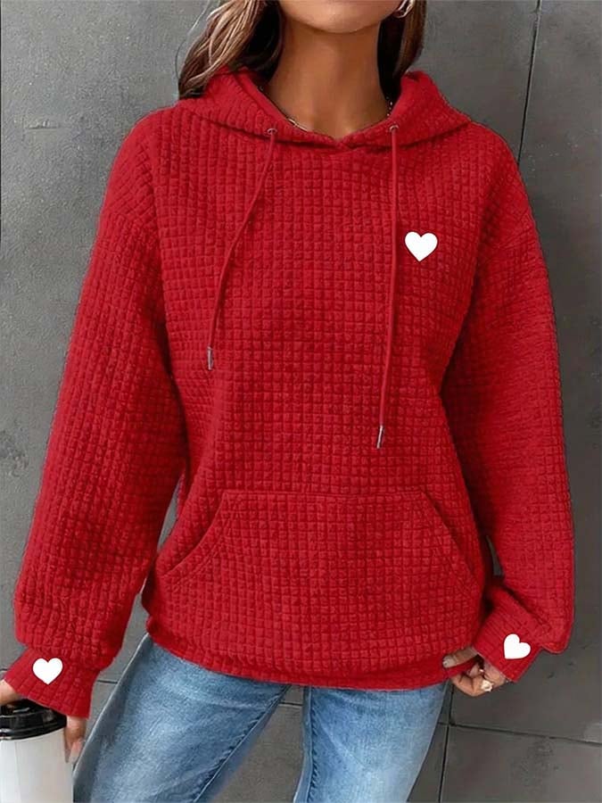 Women'S Casual Color-Block Heart Print Hooded Pullover Sweatshirt