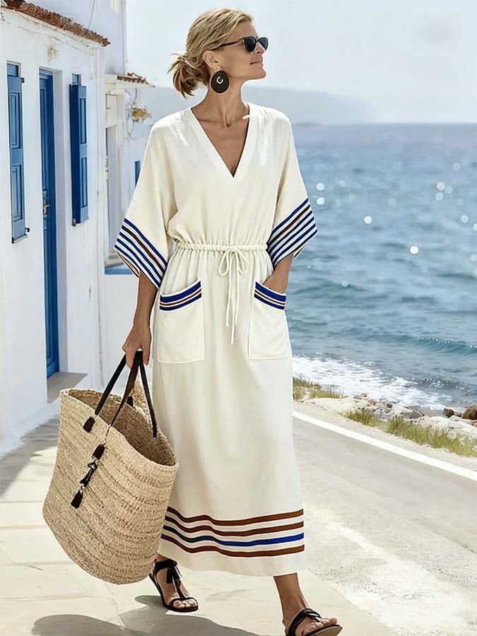 Women'S Casual Color-Block Striped Dress