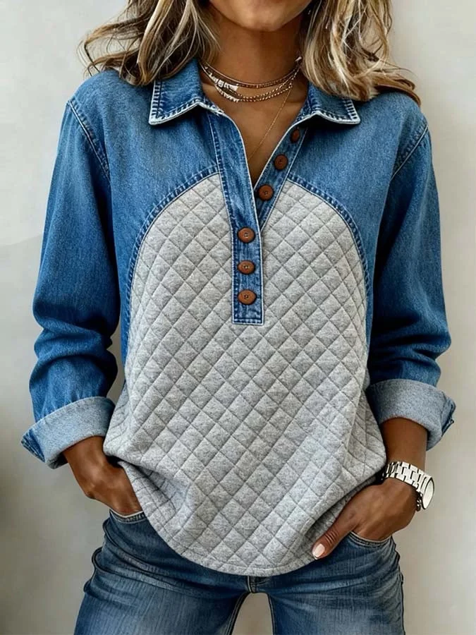 Women'S Casual Color-Blocked Pullover Sweatshirt
