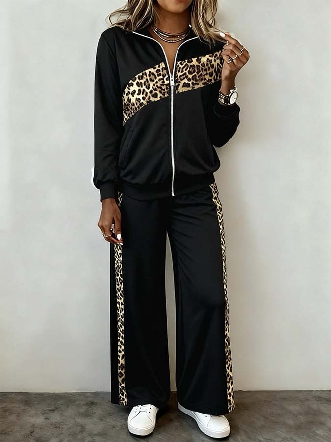 Women'S Casual Contrast Leopard Print Pants Suit