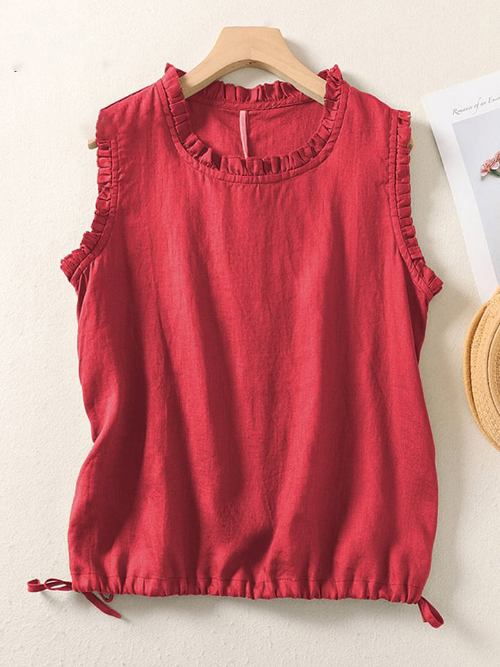 Women's Casual Sleeveless Linen Ruffle Shirt