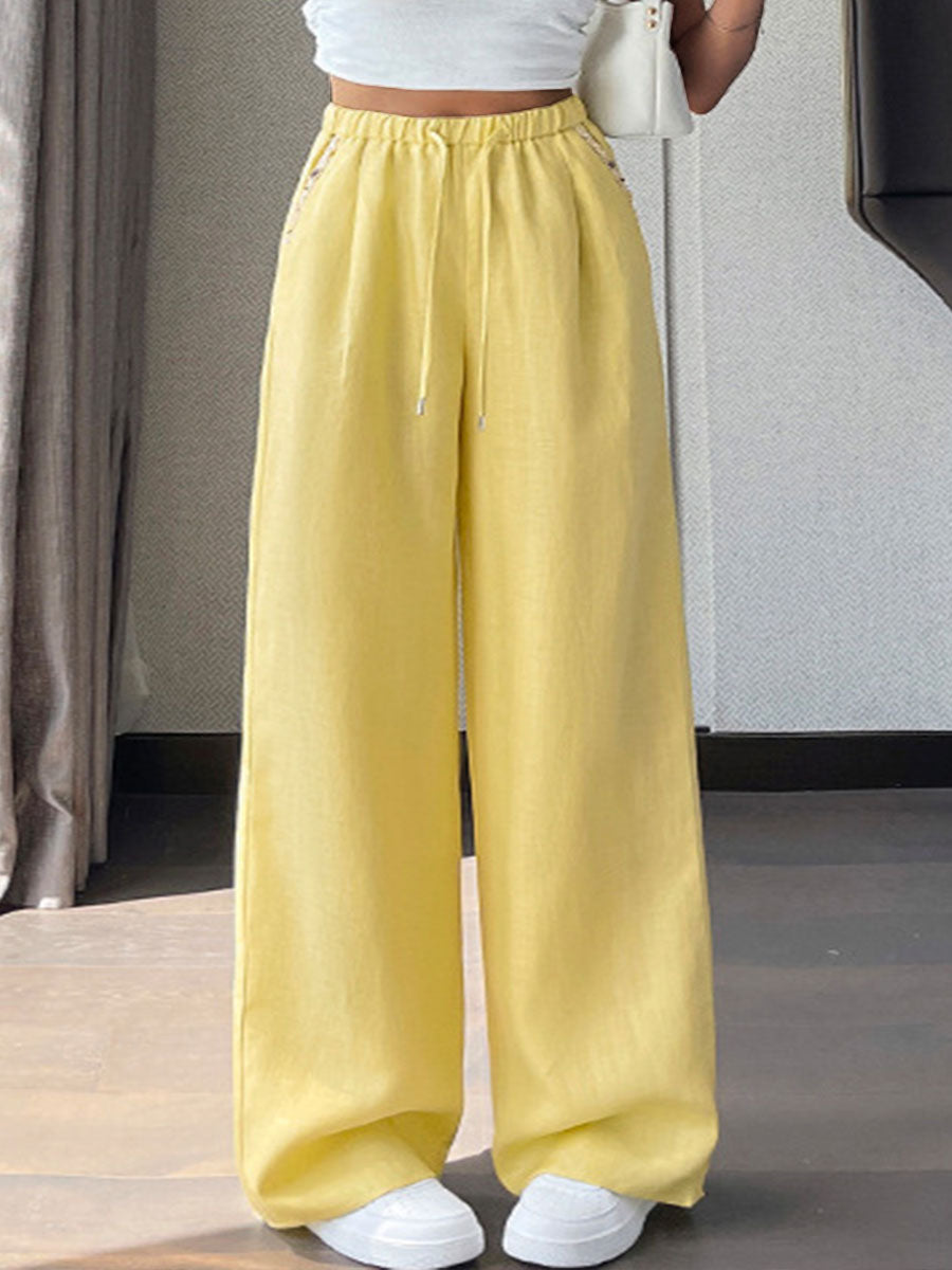 Women's Elastic Waist Casual Relaxed Loose Tencel Linen Wide Leg Pants