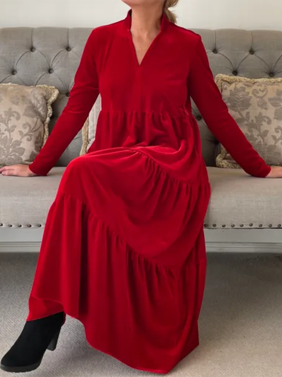 Women's Elegant Velvet V-Neck A-Line Midi Dress