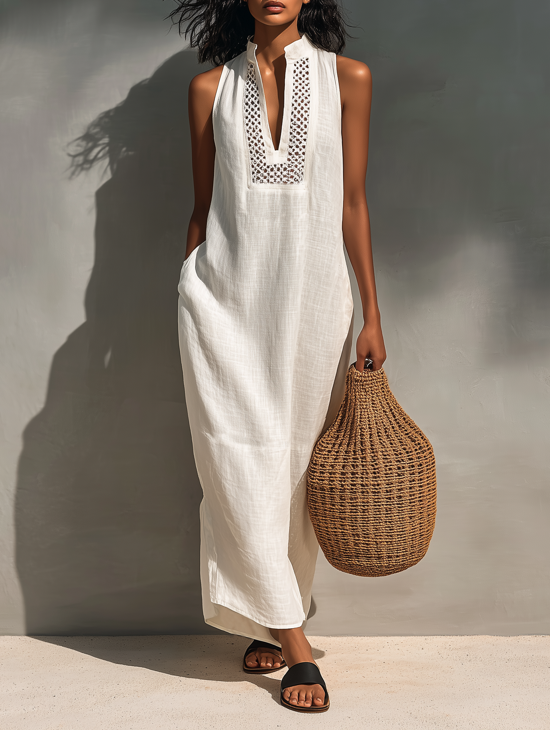 Women's Minimalist Sleeveless Maxi Dress With Cutout Neckline